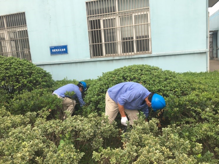 由于今年公司項目建設,外來人員較多,現場相對零亂,綠化區域垃圾現象嚴重,有飲料瓶、餐巾紙、廢切割片、皮圈、破手套、棍子等,真可謂五花八門樣樣有。經過一個半小時,7名黨員完成了綠化區域的大掃除,雖然一個個滿頭大汗,手臟了,衣服臟了,但看到廠區綠化區恢復了原來的干凈,大家心里都露出了笑容。